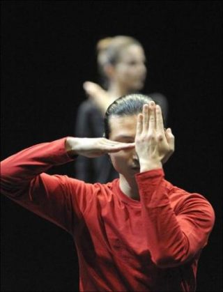 Car si l’on croit voir passer le fantôme de Pina Bausch à l’occasion d’un duo castrateur ou celui d’Odile Duboc entre les notes du Boléro de Ravel samplé par Dusty Springfield…, c’est avant tout le spectre de Dominique Bagouet qui hante Si je meurs laissez le balcon ouvert. La encore, on pourra reprocher à Raimund Hoghe son excès de fascination pour le chorégraphe et l’articulation quelque peu laborieuse qu’il propose entre l’original et le ready-made, la transmission d’un répertoire et l’esprit de son auteur, son registre propre et celui du cher disparu.