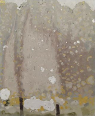 La série des stèles funéraires, Wilmott 1 à 5, est d’ailleurs un véritable ballet pictural sur toiles ! Des courbes et des traits s’enchevêtrent énergiquement ou se superposent délicatement, recréant la matière de la pierre, de la mousse, des épitaphes à peine lisibles, des creux et des pleins des ornements, des fissures…