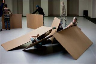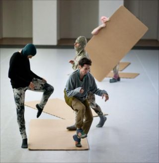 La superposition des actions des interprètes sur cette partition vocale fait naître des configurations d’une musicalité aussi inquiétante qu’incongrue, soulignant ainsi les thèmes de l’analogie et de l’obscurité de la pièce.