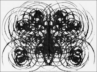 — Gilles Balmet, Rorschach,2010. Encre sumi sur papier japonais Washi. 49,6 x 36,4 cm