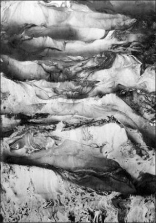 — Gilles Balmet, Les Nouveaux Territoires, 2011. Lavis d’encre sur toile. 195 x 130 cm