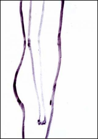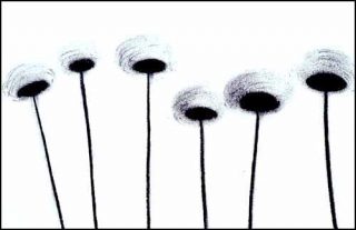 Ces travaux suggèrent des impressions plus qu’ils n’imposent une interprétation. Rien n’est vraiment défini. Les formes, qui sont des silhouettes de corps nus, des vêtements, des motifs floraux ou plus simplement “un jeu sur la ligne”, représentent les choses de manière générale, presque grossière. L’identification est toujours aléatoire. Ainsi, les fleurs dont l’extrémité des tiges de forme ovale avec une auréole ressemble au fruit du pissenlit entouré de son aigrette, semblent prêtes à s’envoler au moindre coup de vent. L’impression de fragilité et de légèreté est ici inséparable de ces instants de bonheur enfantin lorsque, à cause de notre souffle, ce petit faisceau de poil s’envolait vers le ciel.