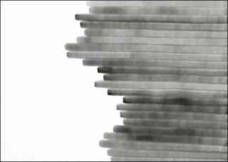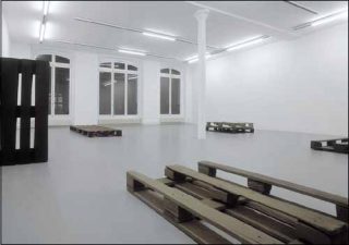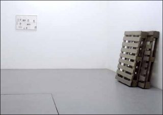 Avec les sculptures d’Helen Mirra réalisées à partir de bois de palettes de transport, la tonalité reste minimaliste. Si c’est également une artiste du «sensible», elle propose néanmoins une approche conceptuelle et philosophique de son travail où différents niveaux de lecture se chevauchent. Peint dans des couleurs sourdes (gris, bleu et vert), le bois de récupération parle d’une autre vie: celle de la forêt dont il émane, celle des voyages en train puis de la mise au rebus de ce bois à peine utilisé. Et lorsque l’on sait que ces œuvres ont été réalisées lors d’une résidence à Berlin, vient à l’esprit le lourd passé des trains du dernier voyage, ceux qui menaient aux camps de la mort.