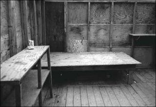 — Yukon (étagère et lit), 2004. Tirage Lambda noir et blanc. 24 x 36 cm.