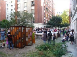 A Paris, on a remis en place le même protocole qu’en Ardèche. Les clefs de l’armoire sont mises en vente à un endroit (jusqu’à présent un café). Le panneau qui sert de porte-clefs est une vue du ciel au-dessus de l’armoire, donc à chaque fois différente. On rend possible l’accès à l’armoire en ouvrant une brèche dans un espace privatif. On suggère un chemin possible entre les clefs et l’armoire.