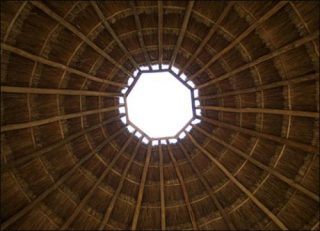 Destinerrance est composée de matériaux végétaux traditionnels importés du Mexique, sa construction a été confiée à des constructeurs Mayas maîtrisant les techniques ancestrales, les «palaperos», qui ont travaillé pendant trois semaines sur place.