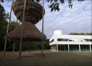 Tout en se basant sur la thèse d’Adolf Max Vogt pour qui l’architecte Le Corbusier a certainement été influencé par les constructions de bâtis lacustres sur pilotis découverts en Suisse pendant son enfance, «Sitio» réunit au sein d’un même lieu l’architecture moderniste de la Villa Savoye et des Å“uvres créées par l’artiste mexicain Santiago Borja à partir de techniques artisanales traditionnelles de la communauté indienne Maya.