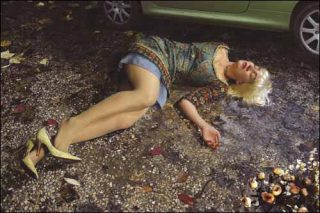 Au premier coup d’oeil, on croirait des images de photo-reportage, comme les morts que Weegee prenait en photos et qui faisaient la « une » du journal du lendemain. Mais, plus l’oeil y regarde et plus la supercherie se révèle. Tout cela est trop beau pour être vrai. Avec un luxe de détails, l’artiste se plaît à nous prendre au piège de ces clichés trop séduisants. Ils semblent se rire de notre société du glamour où tout doit être maquillé, même les histoires sordides des prostituées qui finissent mortes sur le trottoir ou sur les bas-côtés d’une autoroute.