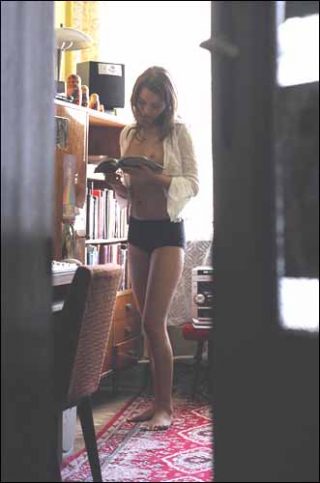 Kern veut nous faire croire aux moments volés, à l’inattendu d’un sein dévoilé, de la petite voisine qui lit Heidegger à poil, aux scènes entraperçues dans l’entrebâillement d’une porte du vestiaires des filles, à la jupe remontée laissant apparaître le coton d’une petite culotte, au fantasme de la «girl next door» fantasmatiquement plus proche des filles des podiums que de Bridget Jones.