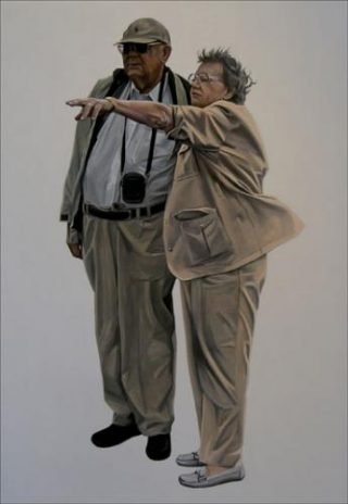 — Jérôme Romain, Couple de touristes, 2009. Huile sur toile. 120 x 71 cm.
