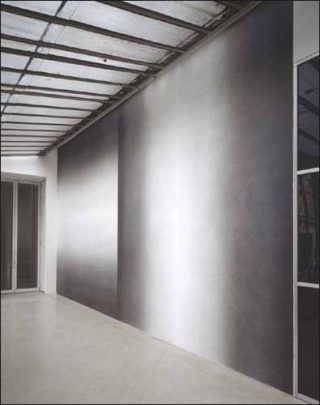 Dégradé de gris: le mur extérieur, support complice du wall drawing de Sol LeWitt, nous incite à nous rapprocher. Des milliers de déambulations graphiques s’entrecroisent en surface.