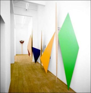 La vivacité des couleurs agit comme véritable séducteur et magnifie les sculptures. Les pièces approchent le mystère voire le mystique. Par le biais d’un répertoire de formes appartenant autant au décor, à la sculpture qu’à l’installation, Delphine Coindet extrait une poésie redoutable de ses matériaux.