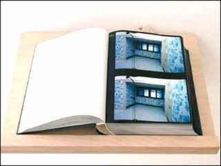Dans une perspective exactement inverse, le très beau Blue Room Film Book de Rachel Khedoori entreprend de façonner, à partir d’une série de photographies présentées à la manière d’un gigantesque flip book, un temps doté d’une continuité quasi filmique. Page après page, le visiteur éprouve la sensation d’un espace toujours plus extensible, et la chambre bleue se déplie, se déforme, se reforme, bref, fluctue au rythme d’un temps dont l’ouvrage parvient à rendre toute la plasticité (à tort ou à raison, on pense à Michael Snow). Précisons que le film book, comme le souligne son titre, constitue la traduction d’une proposition figurative développée, ailleurs, en images mouvantes : une suite photogrammatique, donc.