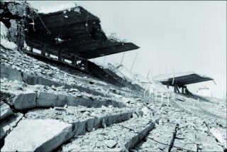 Beyrouth, 1982. La guerre n’en finit pas. Sophie Ristelhueber, alors photographe chez Rapho, arrive sur le théâtre des opérations. Armée d’un appareil photographique, le même que celui de ses collègues photoreporters dits «de guerre», l’artiste opère un décentrement radical. Le conflit, ses combats ni ses victimes n’entrent dans le champ. C’est le décor, qu’elle vide de toute présence, cette ville martyrisée, éternel arrière-plan des images médiatiques, avec ses bâtiments modernes et fonctionnels, immeubles d’habitation, cinéma, stade, etc., qui est l’objet de toute l’attention de Sophie Ristelhueber.