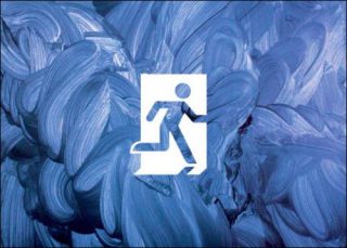 La vidéo Dead End de Laurent le Bourhis nous entraîne aussi dans un parcours mais il s’agit là du chemin d’une évacuation, une course à travers un labyrinthe en ligne droite. Filmé à New York, le panneau «exit» défile devant nous de manière répétitive, laissant espérer une sortie proche mais qui demeure toujours inaccessible. La sculpture d’Hervé Bréhier sans titre, sans fin prolonge cette idée d’une sortie inatteignable puisque l’artiste a découpé une porte et l’a montée en forme de huit, signe de l’infini. La porte, ici, n’est donc ni fermeture, ni ouverture sur un ailleurs; elle boucle sur elle-même.