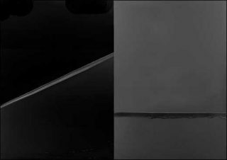 Peinture 220 x 366 cm,14 mai 1968, et Peinture 202 x 327 cm, 17 janvier 1970, se font presque face dans l’exposition, comme l’envers l’une de l’autre. Un maillage lâche de jambages noirs sur blanc face à une toile submergée de noir, mais pas totalement recouverte. Comme une mise en exergue des tensions qui travaillent ces recherches plastiques : entre noir et blanc, lumière et opacité, présence et retrait, vide et plein. Qui semblent trouver leur résolution paradoxale dans «l’outrenoir».