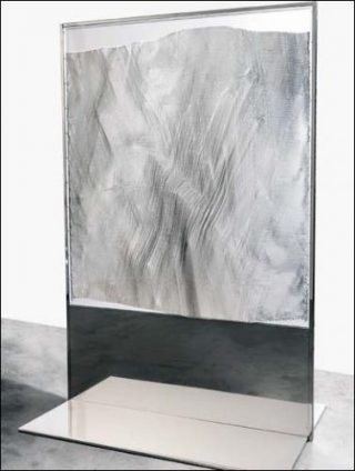 Dès 1957, Heinz Mack se présente comme sculpteur et peintre. L’ordre des mots n’est pas anodin et fait pleinement sens à la vue de toiles à l’empâtement généreux, qui enfante un relief particulièrement significatif de cette région entre peinture et sculpture. La toile en grand format (212 x 130 cm) Ohne Titel réalisée en 1959, sur laquelle enfle la matière (ici de la résine synthétique) ne dira pas le contraire. Le relief en traits verticaux clairs créée ici sa propre symphonie. Oubliée la surface lisse sur laquelle elle semble trépigner. C’est à cette même période, entre 1957 et 1966 précisément, que Heinz Mack devient le fondateur (avec Otto Piene puis Günther Uecker) et l’animateur principal de ZERO: l’entité artistique, qui rayonne aujourd’hui encore internationalement, se pose en référence absolue du renouveau cinétique (signifiant «qui met en mouvement») de l’abstraction, dont Yves Klein, notamment, fut membre.
