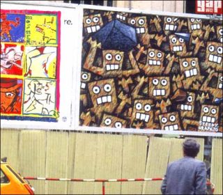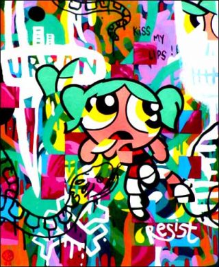 Olivier Rizzo/Speedy Graphito expose à l’Espace Tiphaine Bastille (8, passage de la Bonne Graine, Paris, 75011) jusqu’au 5 juillet 2004, en compagnie de Jérôme Mesnager et de VLP (Vive La Peinture).