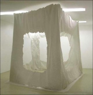 Ainsi l’exposition n’est pas juste un moment à l’occasion duquel l’oeuvre est ajoutée à un lieu, mais la réunion d’un espace et d’un temps de mise à l’épreuve, de mise en tension de l’action et de l’objet dans son articulation avec l’espace, un moment particulier de l’expérience, que renforce le caractère indéplaçable et éphémère des sculptures.