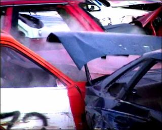 Si Target et Grand Prix ont pour élément commun ces roues colorées, la signification qu’elles prennent n’est évidemment pas la même. À la régularité de la série des cibles et de leur mouvement s’opposent les mouvements désordonnés des roues des voitures. Mais cette discontinuité mécanique est le prix de leur ouverture à la rencontre, au risque du chaos et de la destruction.