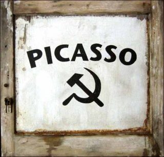 Grâce à ses juxtapositions, Michael C. McMillen produit régulièrement des surprises visuelles basées sur des noms et des symboles d’une grande force évocatrice. Picasso With Logo en est un exemple éloquent: sur un vieux panneau de bois, le nom de Picasso jouxte le marteau et la faucille symboliques de l’ex-URSS.