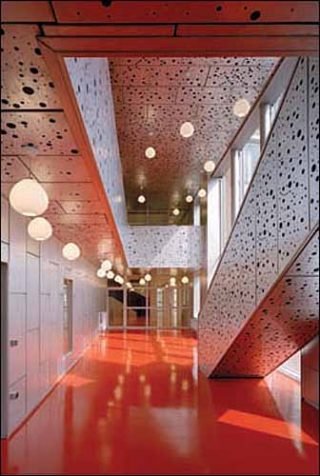 Enfin, leurs ouvertures et l’usage excessif de la couleur célèbrent une attitude radicale. Ainsi, l’hôpital des enfants minimise leur isolement au moyen d’une multitude de fenêtres comme autant de caissons de lumière. Chacun diffère par ses dimensions ou sa profondeur, signalée par une couleur vive: l’ensemble reprend le dégradé d’un arc-en-ciel.