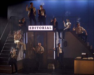 Stories raconte l’histoire d’un jeune homme, symboliquement prénommé Icare, qui voit l’envol de sa carrière d’acteur être freiné par un réalisateur qui l’emprisonne dans son film. Le spectacle oscille ainsi entre les coulisses du filmage et les scènes directement issues du film dont l’esthétique est fortement inspirée par les années 1940 et 1950 : une cigarette à la main, les interprètes portent des chemises blanches, des pantalons taille haute et des trenchcoats modernisés, dans un univers composé de machines à écrire, d’anciens téléphones et de vieilles valises en cuir.