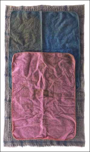 La serpillière nous fait face, laissant le spectateur s’abandonner à la contemplation, se perdre dans les plis du tissu.