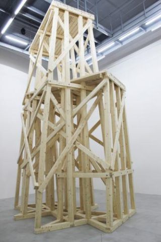 Le travail d’Oscar Tuazon est basé sur de remarquables constructions en bois, en béton et en acier inspirées par la tradition du DIY (Do It Yourself) et de l’architecture survivaliste, adoptée plutôt comme une sorte de stratégie qu’en terme de forme. Ses travaux tissent des liens idéologiques entre le Land Art et l’Art Minimal, combinent l’idée d’abstraction avec des constructions terre à terre.