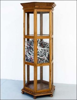 Nous passons du froid polaire à un paysage plus exotique avec Shell, représentant sept cauris, coquillages utilisés comme monnaie d’échange dans la Chine ancestrale, ou comme fétiches divinatoires dans les rites tribaux. Ces coquillages se trouvent ainsi investis de différentes valeurs d’usage. Ils demeurent foncièrement polysémiques. Leur signification change selon le contexte où ils se trouvent employés. Nous pouvons également remarquer qu’à travers ces deux fonctions, le cauri semble emprunter deux des valeurs possibles que Walter Benjamin accorde à l’œuvre d’art: soit une fonction cultuelle, en s’inscrivant dans les rites d’une société, soit une valeur marchande.