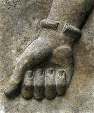 Quand des mains chargées d’ objets sont tendues vers Sargon II, ce sont les tributaires mèdes qui, en visite au roi, apportent des présents : la main est geste politique. Quand elle agite une situle, c’est un génie ailé accomplissant le rite de fertilité : la main est alors geste religieux.