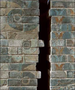 Christian Milovanoff nous apprend à lire dans le creux de la pierre ; c’est ce que suggère la photographie montrant des briques glaçurées et colorées de la frise des griffons : deux pans de briques sont séparés, le visiteur contemple son reflet dans cet interstice, et glisse dans cette faille temporelle. Un autre récit est possible.