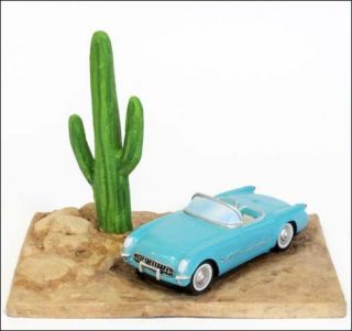 L’ensemble formé par la toile et la sculpture construit un mini-récit: «The car is on a pedestal in front of the sky, as if it‘s on a cliff overlooking the expansive sunset. This tableau is sort of about riding off into the desert sunset at the end of the movie.»