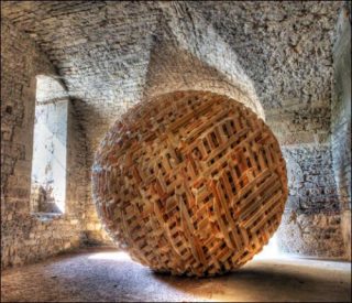 Avec l’exposition «Super Asymmetry», Vincent Mauger interroge la notion même de volume et propose l’expérience d’une sculpture de l’immatériel. Au centre, le vide creuse une «sorte de paysage en négatif», dans l’enchevêtrement des lignes d’un nouveau plancher surélevé et composé de briques alvéolées. A l’extérieur, une sphère monumentale mêle les planches et chevrons d’une strate de palettes ajourées imbriquées entre elles.