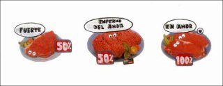 Suzanne Déry joue les candides en explorant le sens littéral des noms de certains produits. De petits tableaux blancs de gentils personnages roses en forme de bulles, tout droit sortis de dessins animés pour enfants, déclinent toutes sortes de jambons tels que le «jambon à la broche» qui est embroché. Sur un autre tableau, un jambon craint le couteau qui va le transformer en ces «lardons» qui sont représentés sur le tableau à côté. Les pièces sont ainsi liées entre elles par cette petite histoire de la vie survoltée de la charcuterie. L’expression des personnages varie en fonction du sort qui leur est réservé.