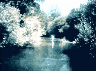 Par de vastes travelling évoluant très lentement à la surface d’un lac bordé d’arbres, la vidéaste Mathilde Rosier entraîne notre regard dans des jeux de reflets sur la surface ridée des eaux, espace fluide et réfléchissant où les éléments du paysage se télescopent. La fine buée qui recouvre son objectif affaiblissant la définition de l’image, ainsi que la mise en musique du film contribuent à créer une impression de dérive de l’œil vers un paysage intérieur, non soumis à des données objectives.