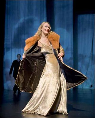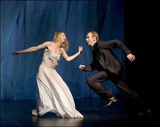 Son organisation de symptômes dans une scénographie de voiles se compose d’une enfilade de solos perturbée parfois par l’arrivée de deux hommes ou la voix stridente de Nazareth Panadero qui hurle deux fois : “La vie c’est comme à vélo, ou tu roules ou tu tombes”. La tigresse Regina menace le public : “Vous n’avez pas encore vu comme je peux disjoncter. Je pourrais presque tuer quelqu’un. Je suis complètement tarée, complètement à côté de la plaque.” Tandis qu’un homme se blottit dans le coude d’une femme et s’adapte à ses contours. Des ombres derrière le rideau sont visibles dans leur attente scénique. Lascivement, Julie Shanahan entame un solo dans l’une de ces robes longues de satin propres à l’univers de Pina Bausch.