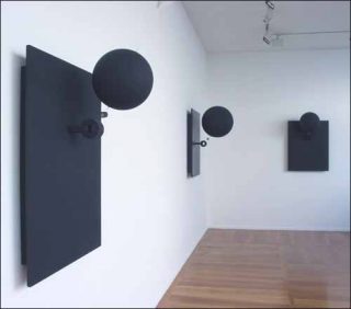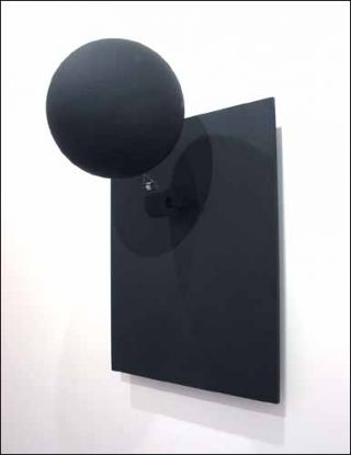 — Système solaire 1, 2002. Tableau magnétique : 100 x 80 cm, sphère : Ø 40 cm.