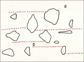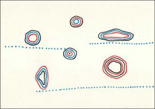 Cette série explore la frontière ténue qui existe entre figuration et abstraction. Quelques formes pleines et traits de couleurs juxtaposés composent les bases d’une esquisse que notre cerveau ne peut s’empêcher d’achever (comme il le fait en interprétant la forme des nuages ou des rochers).