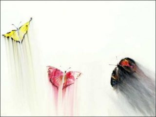 L’artiste provoque des télescopages entre couleurs et objet, peintures et dessins, entre les œuvres au sol et celles qui se trouvent au mur. «De l’autre côté du miroir» les tableaux sont valises, les sculptures tableaux et les dessins s’envolent.