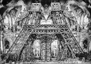 Les compositions de Ken Weaver juxtaposent des fragments d’architectures hétéroclites : dans Ad Perpetuam Memoriam (From the Perpetual Remembrance), les pieds de la Tour Eiffel, projet utopique par excellence, ici inachevé, occupent une voûte baroque, creusée de niches et d’oculi, qui affirme son obsession du décor et sa peur du vide face à l’efficacité mathématique de la Tour de 100 mètres, œuvre d’ingénieur avant tout.