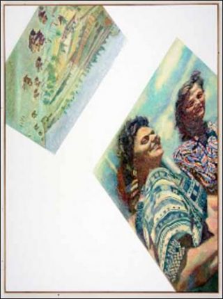 Voici des étudiantes au bord d’un fleuve, le regard tourné dans la même direction. L’image, placée de travers en haut à gauche de la grande toile blanche, semble tombée par hasard dans le tableau. La mémoire peut restituer une part de l’émotion de jadis, mais le monde qui l’entoure a disparu à jamais. Le couple Kabakov présente ce monde révolu avec tout le recul et l’objectivité d’un cinéaste derrière sa caméra, ce qui a pour effet de rendre encore plus émouvantes les scènes saisies au vol, aussi quotidiennes soient-elles.