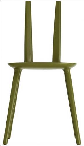 Tabu est sculptée numériquement dans le frêne massif, elle existe en 5 versions depuis le dossier en bois plein et massif, dossier plastique transparent et dossier une branche qui permet une utilisation en table d’appoint.