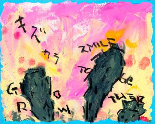 Takashi Hara décline ces symboles dans des Å“uvres explosives, marquées par la crise, mais vives, riches et créatives, doigts d’honneur enfantins au désespoir et à l’abandon.