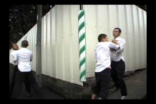 Au sol, deux vidéos en boucle présentent des combats de jeunes Japonais en costume d’écolier. Les gestes sont parfois brutaux, parfois évités mais souvent chorégraphiés. A la fin de ces vidéos, les jeunes gens se retournent vers la caméra pour la fixer.