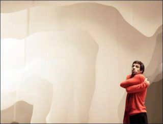 Guillaume Bailliart. Oui, le corps est en jeu: ça ouvre de nouvelles possibilités. Se déplacer, prendre des postures pour indiquer des figures. Au début, je pensais jouer tous les personnages dans l’espace. Comme si j’étais le fantôme de la mise en scène de Gwenaël Morin. Mais ça n’a pas marché: je me retrouvais à parler à moi-même, qui n’était plus là ; je parlais dans le vide; les adresses étaient complètement floues. Je sentais que je me perdais. J’ai, par nécessité, fermé les yeux, et travaillé plus «en italienne» (dire le texte à haute voix rapidement et sans tension, sans «pré-jouer»). Je me suis mis plus à indiquer qu’à vraiment faire, comme si je marquais le jeu des personnages. Et j’ai retrouvé des sensations.