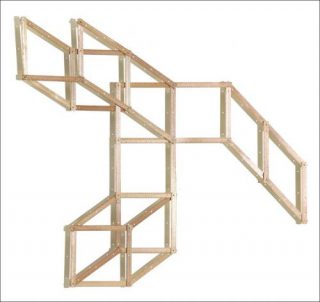 C’est ici l’apparence naturellement artistique des cartes jaunies, et leur intrication ouvragée, qui sauve in extremis ces œuvres de leur schématisme géopolitique. Ses structures obtenues par l’articulation de triples décimètres en plastique bleuté, chevillés à la manière des Meccano, souffrent précisément de l’inélégance scolaire inhérente aux règles qu’il détourne.