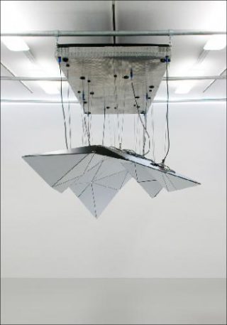 L’installation Tessel, explorant la perception du son et de l’espace, est le fruit d’une collaboration entre David Letellier, artiste et musicien français et le studio Belge d’art électronique LAb(au). Elle consiste en une surface topographique suspendue de 4 x 2 m, subdivisée en quarante triangles. Douze d’entre eux sont connectés à des moteurs et huit sont équipés de transducteurs audio, créant ainsi un espace sonore dynamique évoluant doucement, constamment reconfiguré. La forme de la surface est transformée et synchronisée avec une composition musicale, instaurant un dialogue chorégraphique entre sculpture et son, tout en modifiant la perception.