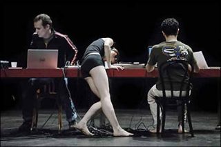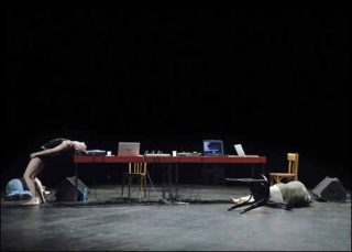 Les danseurs s’effondrent, rampent entre les objets devenus débris, roulent à terre derrière les flammes que retransmettent çà et là les écrans d’ordinateur déposés au sol. La vision traumatique s’équilibre en une écriture surréaliste et l’on croirait presque assister à l’élaboration en temps réel d’une action automatique.