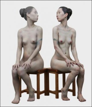 Après l’étude d’autistes désemparés dans «le Syndrome d’Asperger» (à la galerie en 2009) une nouvelle série «the Blind for the Blind» explore les aliénations de ses contemporains dans des figurines en résine peintes, tout aussi minutieuses que spectaculaires. Dans la veine sensationnaliste d’une génération de «bricoleurs» de génie comme les frères Chapman, Patricia Piccinini, Marc Quinn, Ron Mueck ou Evan Penny, Choi Xooang met son éblouissante technique hyperréaliste au service d’un univers à la limite du macabre. Des jeunes gens s’essaient à des tentatives de communication et même d’accouplement.